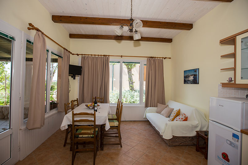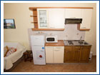 • Kuhinja (hladnjak, 2 ploče na struju, aparat za kavu, posude i pribor za jelo) + blagovaona